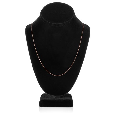 Timeless elegance in solid 14K Rose Gold. This fine gauge 20-inch box link chain ends in a spring clasp and measures at .60 mm thickness. The box link chain is known for its link strength and beautiful sheen encircling the neck. It appears delicate, but is amazingly sturdy enough for daily wear. A lifetime piece for your gold jewelry collection, made of solid 14K Rose Gold, not plated or filled. These fine chains are elegantly presented in a quality two-tone "Everyday Elegance" box with a magnetic closure, a perfect gift for yourself or a loved one.