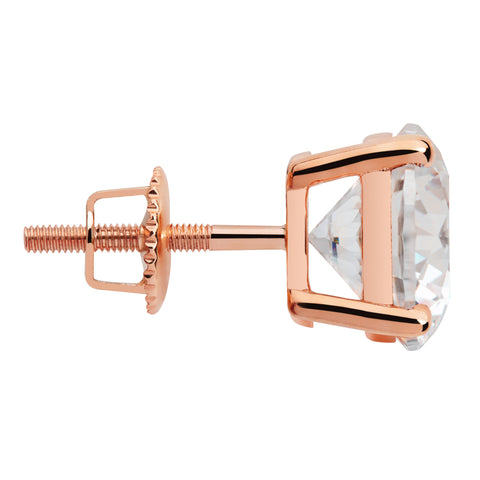 14K Solid Rose Gold Stud Earrings | Round Cut Cubic Zirconia | Screw Back Posts | 3.34 CTW