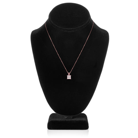 This head-turning pendant showcases an exquisite 2.0 carat Princess cut Cubic Zirconia stone. Princess cut is one of the most popular and sought-after stone shapes, second only to Round cut stones. Our CZ looks just like a real diamond that would cost thousands of dollars. Professionally mounted in a heavy basket setting, this alluring pendant dangles from a 16-inch box link chain with a springring clasp. All are crafted in solid 14K Rose Gold, with no other metals mixed. Your necklace will arrive elegantly presented in a deluxe black velvet box. It is a perfect gift for a loved one or for yourself!