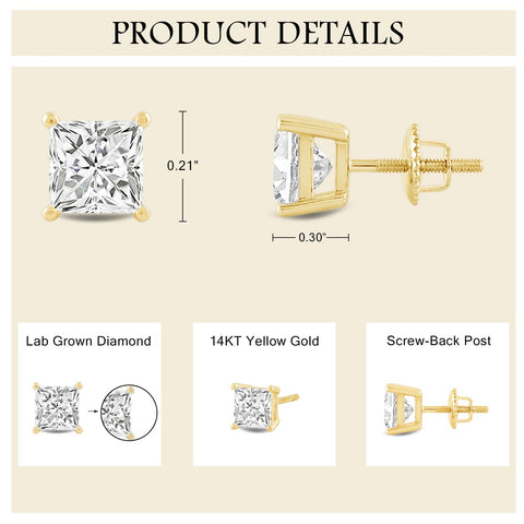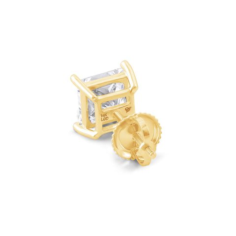 Simple and Stunning, These Princess Brilliant-Cut Lab Grown Diamond Studs Glisten From Every angle. The Carefully Matched Diamonds are 3.0 Ct and Set In Four-Prong Baskets Of Gold For 360 Degree Sparkle.