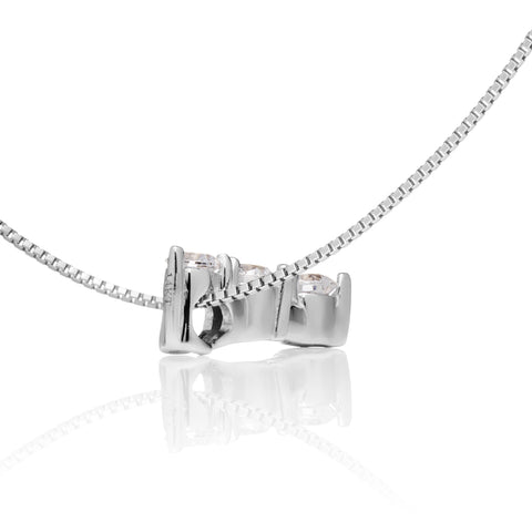 - CUBIC ZIRCONIA - The Trilogy pendant features three gorgeous Cubic Zirconia (CZ) stones that graduate in size starting from the top: 2.5 mm, 2.7 mm, and 2.9 mm for a total diamond equivalent weight of .22 CTW. CZ are the ideal conflict-free alternative to diamonds with similar sparkle, but at a fraction of the cost. A CZ is a synthesized (lab created) crystalline material that is colorless, hard, and flawless. All of our stones are graded AAAAA (the highest grade aailable)!