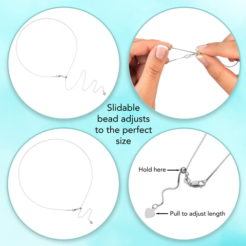- 22-INCH LENGTH - The 22-inch length falls at or above a low neckline, but with the handy adjustable slide you can change the length of this chain to go with any neckline for the utmost in versatility. To shorten it you simply slide the ball down the chain so it can be as short as you wish with the remaining length hanging down the back of the neck. Elegantly simple alone, or as a replacement chain for your favorite pendant! Chain length is measured as total circumference, including the clasp.