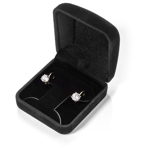 An absolutely lovely pair of lever back earrings showcasing brilliant Round cut Cubic Zirconia (CZ) stones totaling 2.0 carats (1.0 carat each earring) measuring 6.5 mm diameter. Top Quality Grade AAAAA CZs look just like real diamonds that cost thousands of dollars. They are professionally mounted in a heavy basket setting with secure lever-back fastenings, all crafted in solid 14K Yellow Gold, with no other metals mixed (not plated or filled). This beautiful pair of earrings is elegantly presented in a deluxe black velvet box. They will make a perfect gift for a loved one or for yourself!
