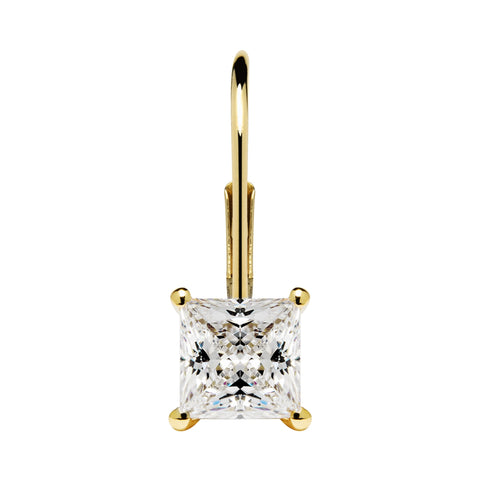 A classic pair of lever back earrings showing off stunning princess cut Cubic Zirconia (CZ) stones totaling 1.0 carats (.50 carat each earring) measuring 4.4 mm diameter. Top Quality Grade AAAAA CZs look just like real diamonds that cost thousands of dollars. They are professionally set in a heavy basket setting with secure lever-back fastenings, all crafted from solid 14K Yellow Gold, with no other metals mixed (not plated or filled). This beautiful pair of earrings is elegantly presented in a deluxe black velvet box. They will make a perfect gift for a loved one or for yourself!