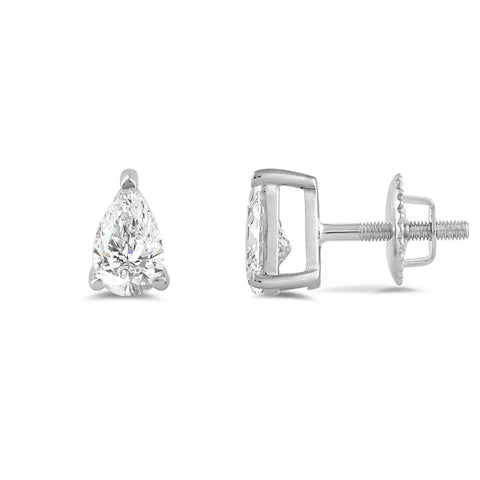 14K Solid White Gold Solitaire Stud Earrings | Pear Cut Cubic Zirconia | Screw Back Posts | 0.5 CTW | With Gift Box