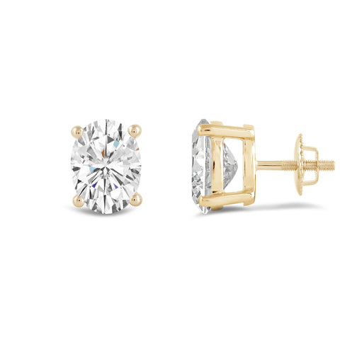 This classic pair of stud earrings showcases exquisite oval cut Cubic Zirconia center stones measuring 8 mm for 3.0 CTW (1.5 CT each). Due to its brilliant and traditional design, Oval cut is one of the popular and sought-after stone shapes. Our CZ looks just like a real diamond that would cost thousands of dollars. Professionally mounted in a 4-prong setting, these luxe earrings are secured with screw-back fastenings, all crafted in solid 14K Yellow Gold. Your earrings will arrive elegantly presented in a deluxe black velvet box. They will make a perfect gift for a loved one or for yourself!