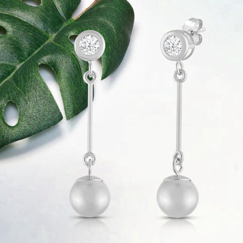 Introducing our exquisite 14K solid gold earrings, featuring a 4mm round cut cubic zirconia (CZ) stone with a rhodium-plated ball. This dazzling stone is equivalent to 0.25 carat. Our top-grade AAAAA CZ stones possess the brilliance of real diamonds, typically worth thousands of dollars. Expertly mounted in a sturdy bezel setting, these stunning earrings gracefully dangle from your ears, secured with a 14k Gold Push Butterfly Friction Post. Crafted with pure gold, our earrings come in solid 14K white gold. They contain no other metals, ensuring their lasting quality and beauty. Your cherished piece will arrive luxuriously presented in a deluxe black velvet box, making it an ideal gift for a loved one or a delightful treat for yourself.