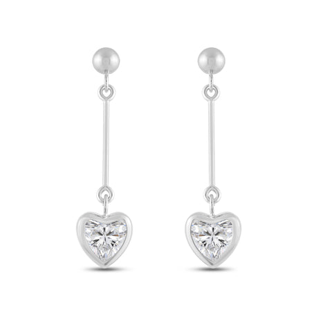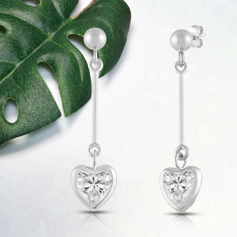 Presenting an exquisite earring crafted from 14K solid White gold, featuring a 3mm rhodium-plated ball and a dazzling 6mm heart cut cubic zirconia (CZ) stone, equivalent to 1.0 carats. Our top-grade AAAAA CZ stones possess the brilliance of real diamonds, typically worth thousands of dollars. Expertly mounted in a sturdy bezel setting, these stunning earrings gracefully dangle from your ears, secured with a 14k Gold Push Butterfly Friction Post. Crafted solely from solid 14K white gold, with no mixed metals, plating, or filling, this earring radiates pure elegance. To add a touch of luxury, your earrings will arrive elegantly presented in a deluxe black velvet box. Whether you're looking to surprise a loved one or treat yourself, these earrings are a perfect choice that radiates sophistication and timeless charm.
