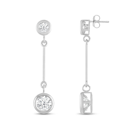 Everyday Elegance 14K White Gold Bar Stud Earrings | Round Cubic Zirconia Stud 0.25 CT (4mm) & 1CT (6mm) | With Gift Box