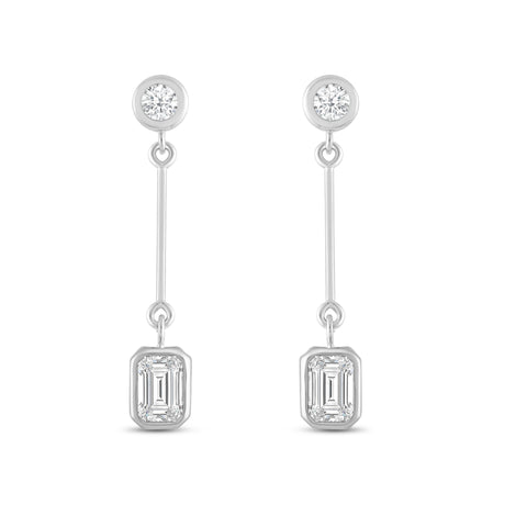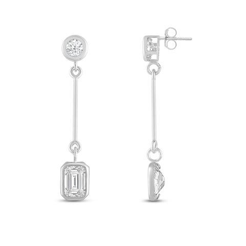 Introducing our exquisite 14K solid gold earrings, featuring an earring with a brilliant 4mm round cut stone at the top and a dazzling 7mm emerald cut cubic zirconia (CZ) stone at the bottom. The CZ stone is equivalent to 1.25 carats. Our top-grade AAAAA CZ stones possess the brilliance of real diamonds, typically worth thousands of dollars. Expertly mounted in a sturdy bezel setting, these stunning earrings gracefully dangle from your ears, secured with a 14k Gold Push Butterfly Friction Post. Crafted solely from solid 14K white gold, with no mixed metals, plating, or filling, this earring radiates pure elegance. Your cherished piece will arrive luxuriously presented in a deluxe black velvet box, making it an ideal gift for a loved one or a delightful treat for yourself.