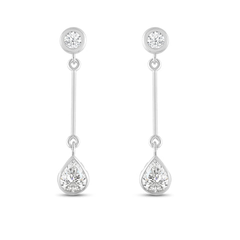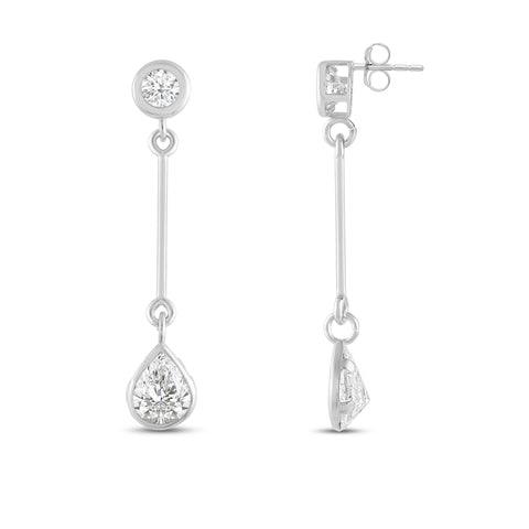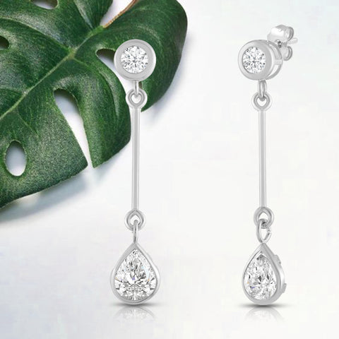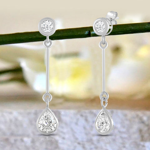 Introducing our exquisite 14K solid gold earrings, featuring an earring with a brilliant 4mm round cut stone at the top and a dazzling 7mm pear cut cubic zirconia (CZ) stone at the bottom. The CZ stone is equivalent to 1.25 carats. Our top-grade AAAAA CZ stones possess the brilliance of real diamonds, typically worth thousands of dollars. Expertly mounted in a sturdy bezel setting, these stunning earrings gracefully dangle from your ears, secured with a 14k Gold Push Butterfly Friction Post. Crafted solely from solid 14K white gold, with no mixed metals, plating, or filling, this earring radiates pure elegance. Your cherished piece will arrive luxuriously presented in a deluxe black velvet box, making it an ideal gift for a loved one or a delightful treat for yourself.