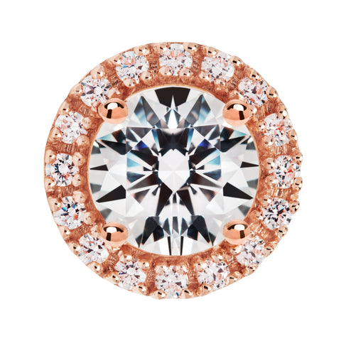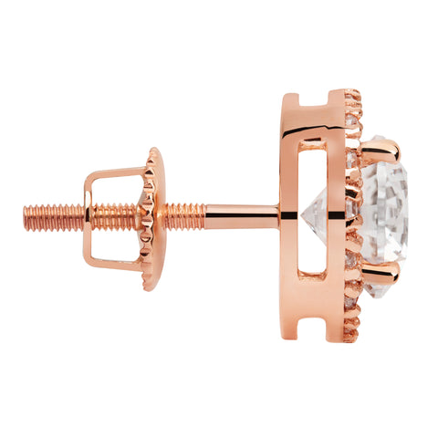 14K Solid Rose Gold Stud Earrings | Round "Halo" Cubic Zirconia | Screw Back Posts | .48 CT center, .60 CTW each, 1.20 CTW