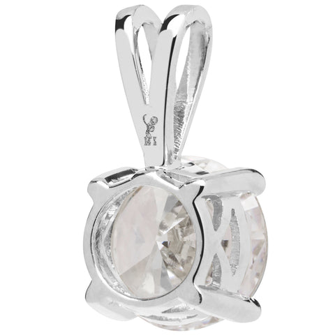 - CUBIC ZIRCONIA - This head-turning pendant features a gorgeous Round cut Cubic Zirconia (CZ) measuring 6.5 mm wide and 1.0 Carat Total Weight. Cubic Zirconia are the ideal conflict-free alternative to diamonds with similar cut, sparkle, and fire, but at a fraction of the cost. A CZ is a synthesized (lab created) crystalline material that is colorless, hard, and flawless. All of our stones are graded AAAAA (the highest grade available!).