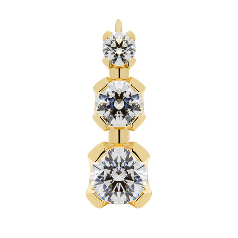 A classy pair of leverback earrings featuring three round-cut Cubic Zirconia stones per earring that graduate in size measuring 3.0 mm, 4.5 mm, and 5.5 mm totaling 1.90 carats (.95 carat each earring diamond equivalent). They are beautifully crafted in solid 14K Yellow Gold with no other metals mixed. Top Quality Grade AAAAA Cubic Zirconia look just like real diamonds and are professionally mounted in a heavy basket setting with secure lever-back fastenings. This beautiful pair of earrings is elegantly presented in a deluxe black velvet box. They will make a perfect gift for a loved one or for yourself!