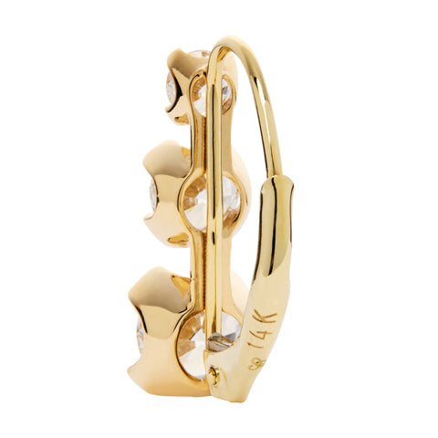 14K Solid Yellow Gold Earrings | Round Cut Leverback 3-Stone "Trilogy" Cubic Zirconia | Basket Setting | 1.90 CTW