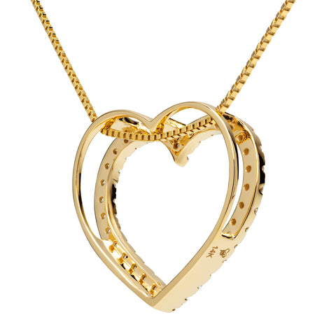 - ABOUT THIS PENDANT - This irresistible open heart pendant is crafted in solid 14K Yellow Gold. The cubic zirconia Pavé design and polished finish create maximum sparkle and shine. The slide design allows a variety of chains and corded necklaces to pass through the body of the pendant with ease. We gave meticulous thought to the details of this design, ensuring that this pendant will stay anchored on its chain so as to avoid off-centered twisting or flipping.