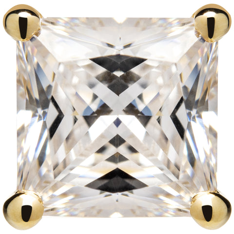 14K Solid Yellow Gold Stud Earrings | Princess Cut Cubic Zirconia | Screw Back Posts | 2.0 CTW