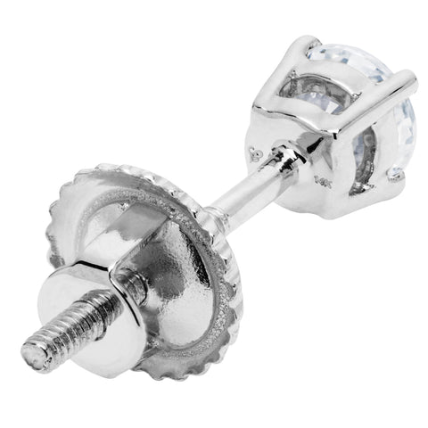 - CUBIC ZIRCONIA - Turn heads in these eye-catching round cut stud earrings. Each earring boasts a gorgeous top-grade Cubic Zirconia (CZ) measuring 4.1 mm for .25 CTW. Round cut is the most popular and sought-after stone shape. CZs are the ideal conflict-free alternative to diamonds with similar cut, sparkle, and fire, but at a fraction of the cost. All of our stones are graded AAAAA (the highest grade available!).