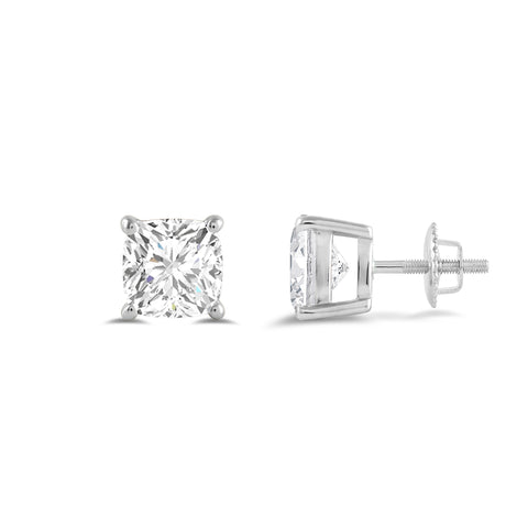 This classic pair of stud earrings showcases exquisite cushion cut Cubic Zirconia center stones measuring 7 mm for 2.0 CTW (1.0 CT each). Due to its brilliant and traditional design, cushion cut is one of the popular and sought-after stone shapes. Our CZ looks just like a real diamond that would cost thousands of dollars. Professionally mounted in a 4-prong setting, these luxe earrings are secured with screw-back fastenings, all crafted in solid 14K White Gold. Your earrings will arrive elegantly presented in a deluxe black velvet box. They will make a perfect gift for a loved one or for yourself!