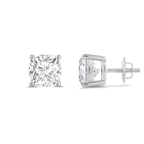 This classic pair of stud earrings showcases exquisite cushion cut Cubic Zirconia center stones measuring 8 mm for 3.0 CTW (1.5 CT each). Due to its brilliant and traditional design, cushion cut is one of the popular and sought-after stone shapes. Our CZ looks just like a real diamond that would cost thousands of dollars. Professionally mounted in a 4-prong setting, these luxe earrings are secured with screw-back fastenings, all crafted in solid 14K White Gold. Your earrings will arrive elegantly presented in a deluxe black velvet box. They will make a perfect gift for a loved one or for yourself!