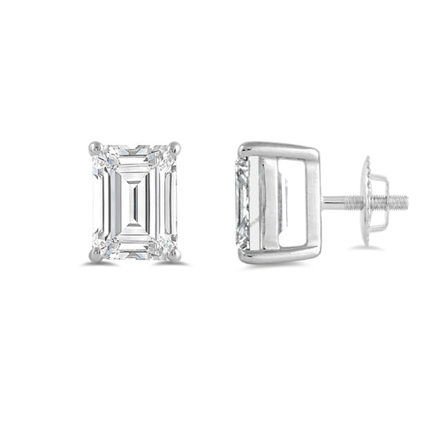 This classic pair of stud earrings showcases exquisite emerald cut Cubic Zirconia center stones measuring 8 mm for 3.0 CTW (1.5 CT each). Due to its brilliant and traditional design, emerald cut is one of the popular and sought-after stone shapes. Our CZ looks just like a real diamond that would cost thousands of dollars. Professionally mounted in a 4-prong setting, these luxe earrings are secured with screw-back fastenings, all crafted in solid 14K White Gold. Your earrings will arrive elegantly presented in a deluxe black velvet box. They will make a perfect gift for a loved one or for yourself!