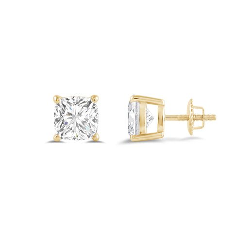This classic pair of stud earrings showcases exquisite cushion cut Cubic Zirconia center stones measuring 7 mm for 2.0 CTW (1.0 CT each). Due to its brilliant and traditional design, cushion cut is one of the popular and sought-after stone shapes. Our CZ looks just like a real diamond that would cost thousands of dollars. Professionally mounted in a 4-prong setting, these luxe earrings are secured with screw-back fastenings, all crafted in solid 14K Yellow Gold. Your earrings will arrive elegantly presented in a deluxe black velvet box. They will make a perfect gift for a loved one or for yourself!