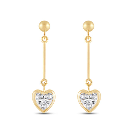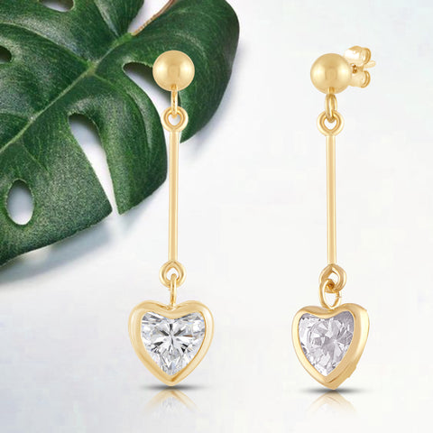 Everyday Elegance 14K Yellow Gold Bar Earrings | Heart Cubic Zirconia Ball Drops 1 CT (6mm) | With Gift Box