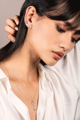 - KEY TO HER HEART PENDANT - This symbolic key pendant features a head-turning cubic zirconia Pavé design with a polished finish that creates maximum sparkle and shine. Rest assured that this pendant is professionally crafted in 14K White Gold. Gold fineness is 585 per 14K gold standards. We never gold plate or use gold filled metals in any of our jewelry. Our commitment to consistent gold quality ensures those with metal allergies that our solid gold jewelry is hypoallergenic.