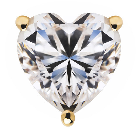 14K Solid Yellow Gold Stud Earrings | Heart Cut Cubic Zirconia | Screw Back Posts | 1.5 CTW