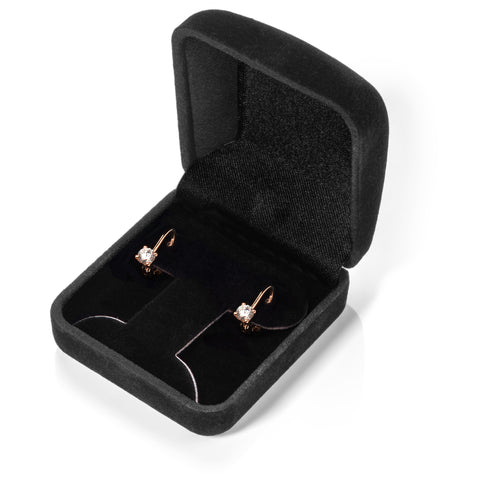 An alluring pair of lever back earrings featuring brilliant round cut Cubic Zirconia (CZ) stones totaling .50 carats (.25 carat each earring) measuring 4.0 mm diameter. Top Quality Grade AAAAA CZs look just like real diamonds that cost thousands of dollars. They are professionally mounted in a heavy basket setting with secure lever-back fastenings, all crafted in solid 14K Rose Gold, with no other metals mixed (not plated or filled). This beautiful pair of earrings is elegantly presented in a deluxe black velvet box. They will make a perfect gift for a loved one or for yourself!