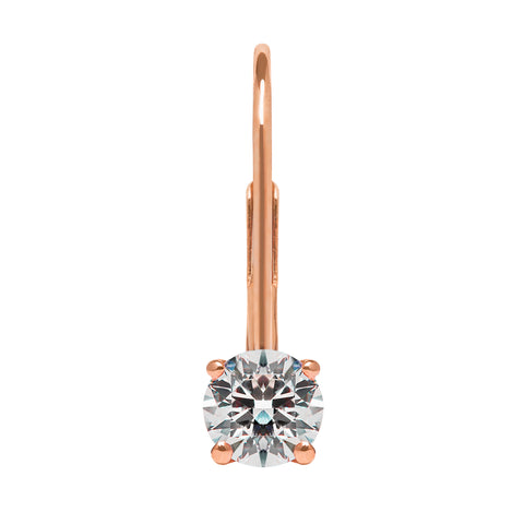 14K Solid Rose Gold Earrings | Round Cut Cubic Zirconia | Leverback Drop Dangle Basket Setting | .50 CTW