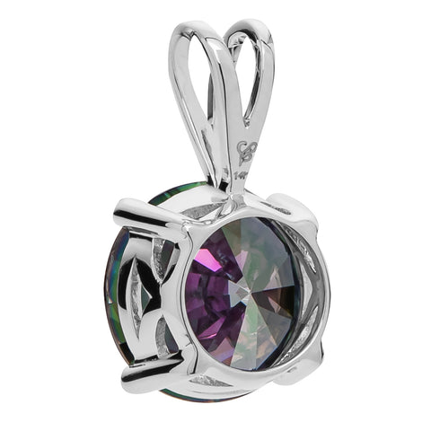 - CUBIC ZIRCONIA - The Mystic pendant features a gorgeous Round cut Rainbow Mystic Cubic Zirconia (CZ) measuring 8.0 mm wide and 2.0 Carat Total Weight. Known for its brilliance, Round cut is the most popular stone shape. Cubic Zirconia are the ideal conflict-free alternative to diamonds with similar cut, sparkle, and fire, but at a fraction of the cost. A CZ is a synthesized (lab created) crystalline material that is colorless, hard, and flawless.