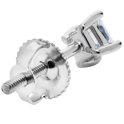 14K Solid White Gold Stud Earrings | Princess Cut Cubic Zirconia | Screw Back Posts | .58 CTW