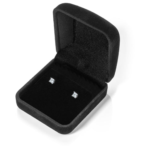 • CUBIC ZIRCONIA - Turn heads in these eye-catching princess cut stud earrings. Each earring boasts a gorgeous top-grade Cubic Zirconia (CZ) measuring 4.0 mm for 0.58 CTW (0.29 CT each). Princess cut is known for its square shape creating modern lines and stunning sparkle. Cubic Zirconia are the ideal conflict-free alternative to diamonds with similar cut, sparkle, and fire, but at a fraction of the cost. All of our stones are graded AAAAA (the highest grade available)!