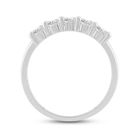 Everyday Elegance 5 Stone Wedding Anniversary Ring Band for Women in 14K White Gold, 1.20 CTTW Round Cut Cubic Zirconia