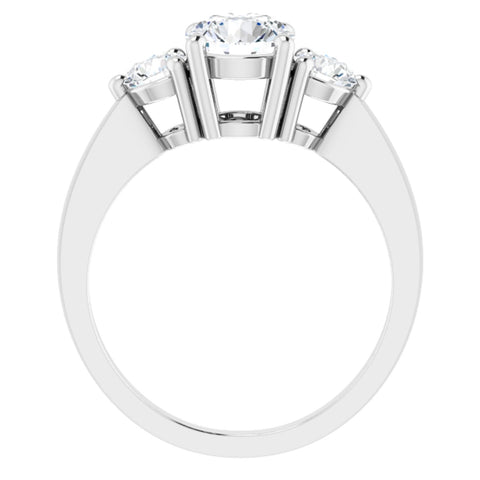 - GEMSTONE - Three Round cut Cubic Zirconia (CZ) stones endlessly sparkle with the center stone measuring 6.5 mm or 1.0 CTW. The two side CZs each measure 4.1 mm for a combined 1.5 CTW diamond equivalent. Each stone is expertly mounted in a secure four-prong setting.