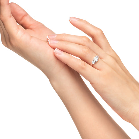 Absolutely breathtaking! This ring is quite exceptional with three Round cut Cubic Zirconia stones. The solid Sterling Silver setting is of craftsmanship that you expect only in the finest jewelry. Cubic Zirconia stones are created in a lab making it conflict-free, environmentally, and socially responsible. The combination of quality settings with exquisite diamond alternatives make our rings an economically friendly choice. Your ring will arrive elegantly presented in a deluxe black velvet box, making it the perfect gift for a loved one or for yourself!