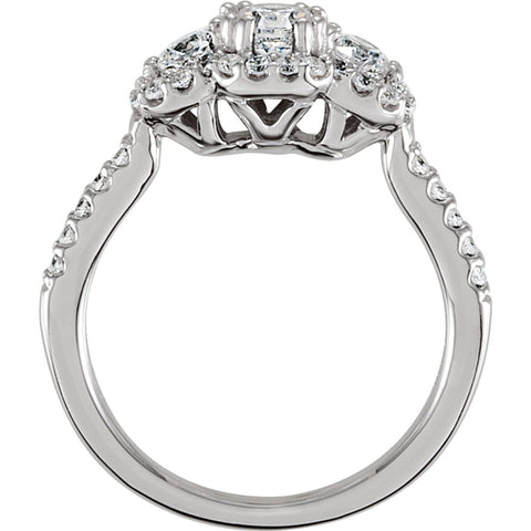 - ABOUT THIS RING - This lovely halo-style ring is crafted in solid Sterling Silver. The primary center stone is Cubic Zirconia and the largest measuring 4.4 mm with two stones on either side measuring 3.4 mm each. Elegantly wrapped around the band are 24 Round cut CZs measuring 1.3 mm each and 10 more CZs measuring 1.40 mm each. Approximate dimensions: top height of 7.26 mm, shank base thickness of 1.99 mm, shank base width of 1.99 mm. Size 6.