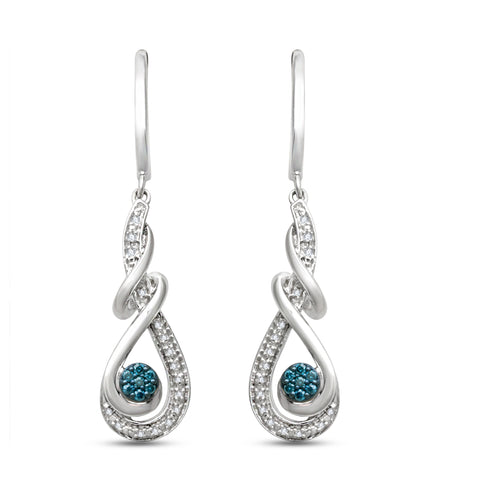 Sterling Silver 1/6 Cttw Natural White Round Shape Diamonds Dangle Earring