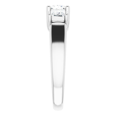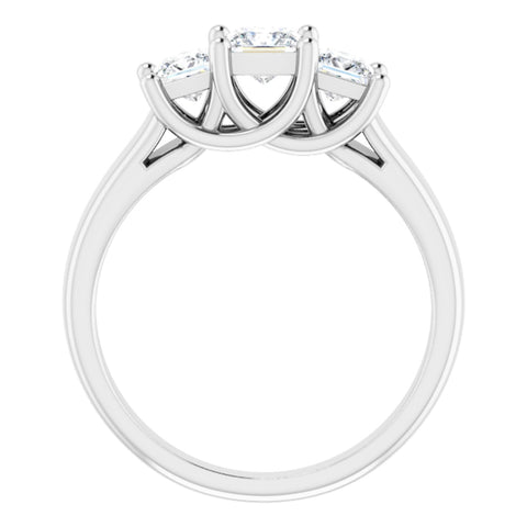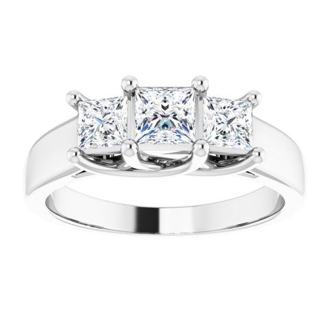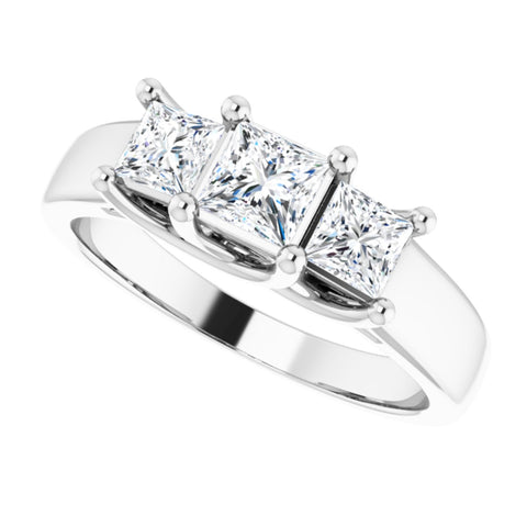 - GEMSTONE - Three Princess cut Cubic Zirconia (CZ) stones endlessly sparkle with the center stone measuring 4.0 mm or .52 CTW. The two side CZs each measure 3.5 mm for a combined .97 CTW diamond equivalent. Each stone is expertly mounted in a secure four-prong setting.