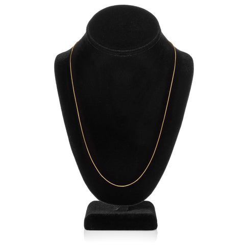 This fine gauge Yellow Gold filled box link chain is simply elegant. The box link chain measures at .85 mm thickness ending in a spring ring clasp and is known for its link strength and beautiful sheen encircling the neck. It appears delicate, but is amazingly sturdy enough for daily wear. The 22-inch length falls at or above a low neckline, but with the handy adjustable slide you can change the length of this chain to go with any neckline. These fine chains are elegantly presented in a quality two-tone "Everyday Elegance" box with a magnetic closure, a perfect gift for yourself or a loved one.