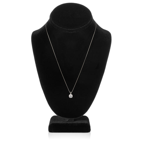 14K Solid White Gold Pendant Necklace | Round Cut Cubic Zirconia Solitaire | 2.0 Carat | 18 Inch .60mm Box Link Chain