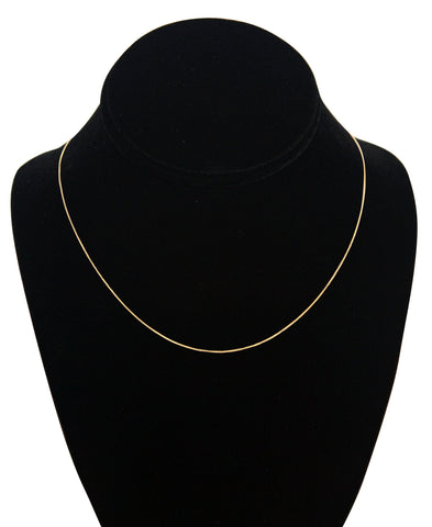 Timeless elegance in solid 14K Yellow Gold. This fine gauge 16-inch box link chain ends in a spring ring clasp and measures at .60 mm thickness. The box link chain is known for its link strength and beautiful sheen encircling the neck. It appears delicate, but is amazingly sturdy enough for daily wear. The 16-inch length fits loosely around the base of the neck like a collar. A lifetime piece for your gold jewelry collection, made of solid 14K gold, not plated or filled. These fine chains are elegantly presented in a quality two-tone "Everyday Elegance" box with a magnetic closure, a perfect gift for yourself or a loved one.