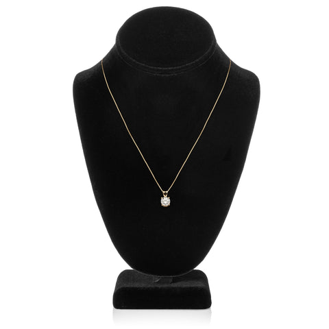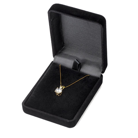 This classic pendant showcases an exquisite 1.0 carat Round cut Cubic Zirconia stone. Due to its brilliant and traditional design, Round cut is the most popular and sought-after stone shapes. Our CZ looks just like a real diamond that would cost thousands of dollars. Professionally mounted in a heavy basket setting, this alluring pendant dangles from an 18-inch box link chain with a springring clasp. All are crafted in solid 14K Yellow Gold, with no other metals mixed. Your necklace will arrive elegantly presented in a deluxe black velvet box. It is a perfect gift for a loved one or for yourself!