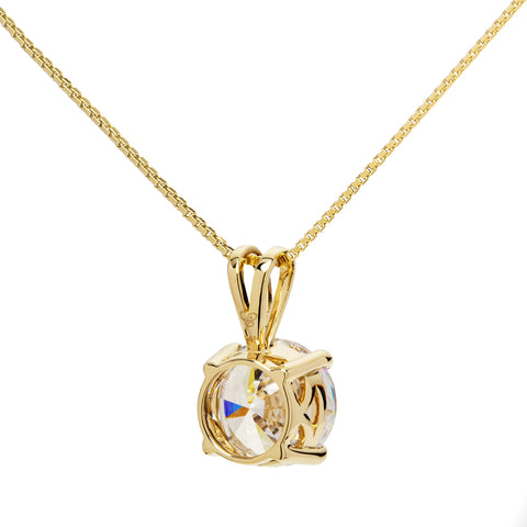 14K Solid Yellow Gold Pendant Necklace | Round Cut Cubic Zirconia Solitaire | 2.0 Carat | 18 Inch .60mm Box Link Chain